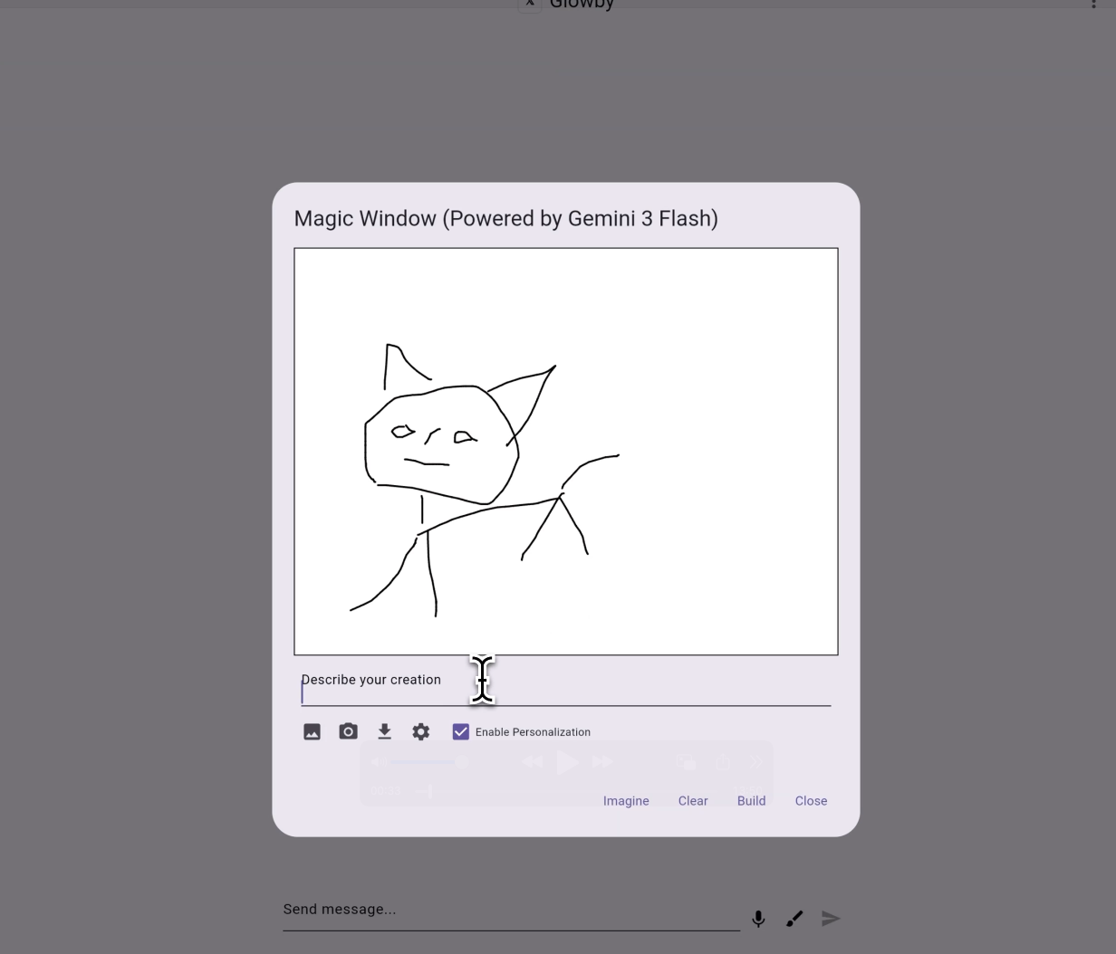 Doodle whatever you want to build on the canvas. It does not need to look good. Add a prompt in the "Describe your creation" field if you want to give more detail.